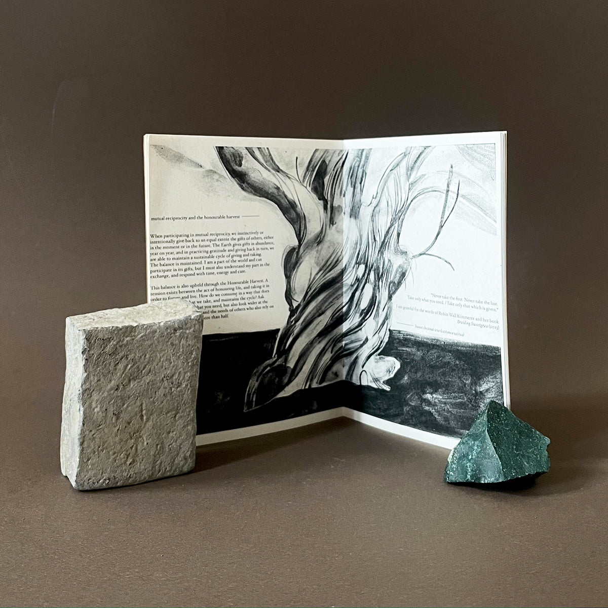 “The Earth gives gifts in abundance, year on year, and in practicing gratitude and giving back in turn, we are able to maintain a sustainable cycle of giving and taking. The balance is maintained. I am a part of the world and can participate in its gifts, but I must also understand my part in the exchange, and respond with time, energy and care.”