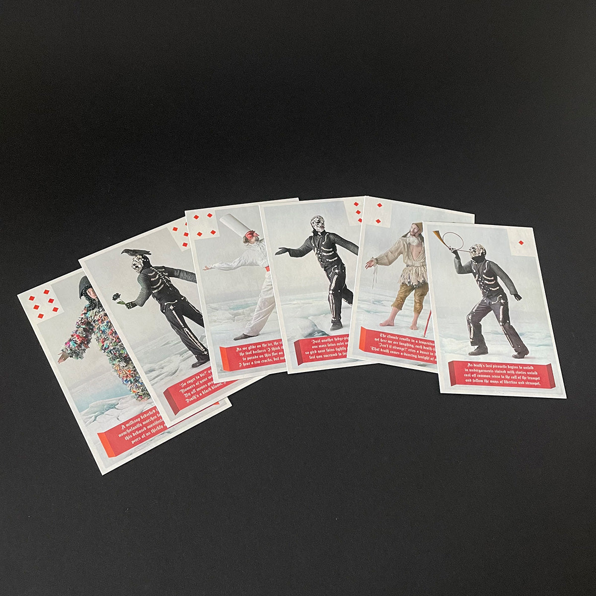 A first-edition prototype with cards and tuck box printed beautifully in Italy on smooth cotton cardstock with eco inks, take a waltz at the masked ball full of characters on a frozen plain, another weird and wonderful carnivalesque creation from artists Kahn & Selesnick.