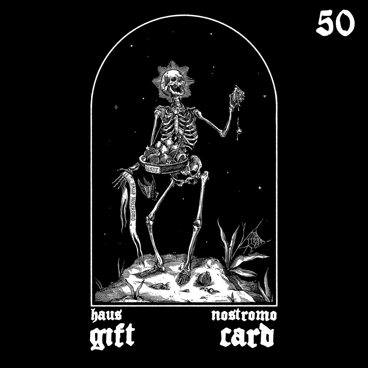 Presenting the Haus Nostromo Gift Card, available in denominations of 10, 25, 50 and 100 Euros*
